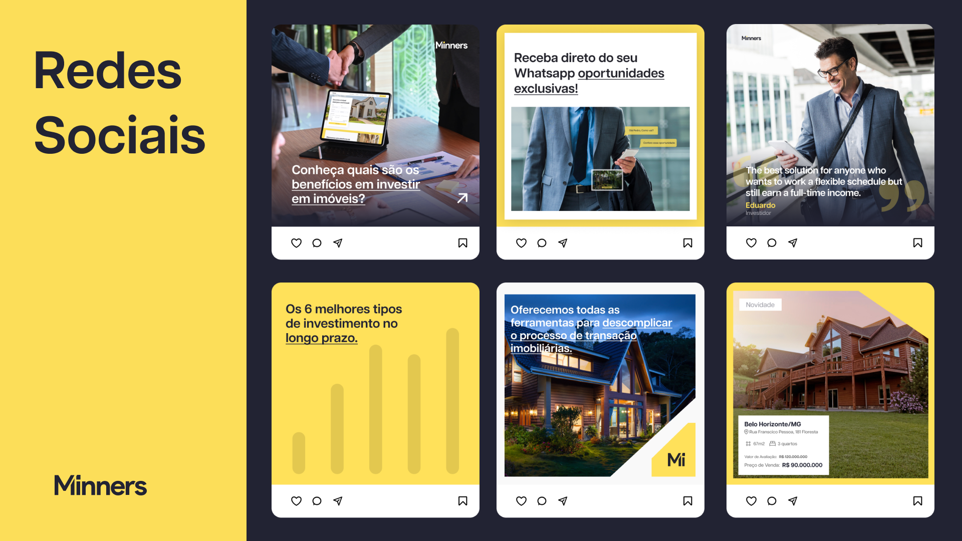 - Plano de Comunicação para Redes Sociais: Desenhamos uma estratégia de comunicação coesa para ampliar o alcance da Minners e fortalecer sua presença online.
